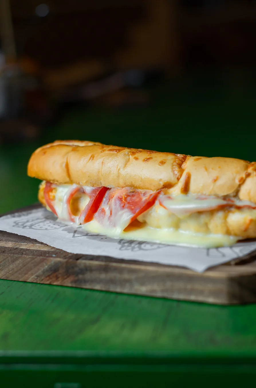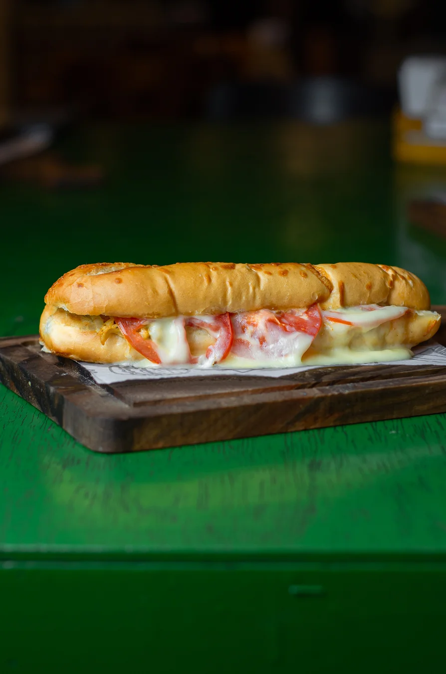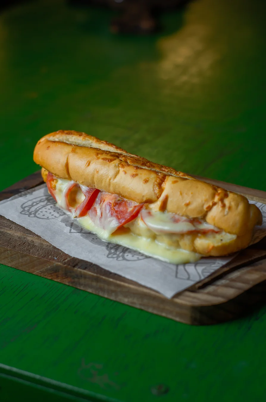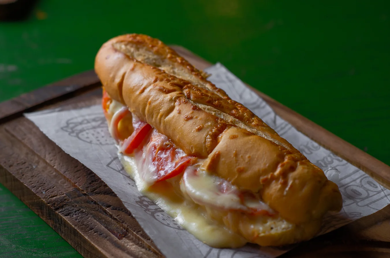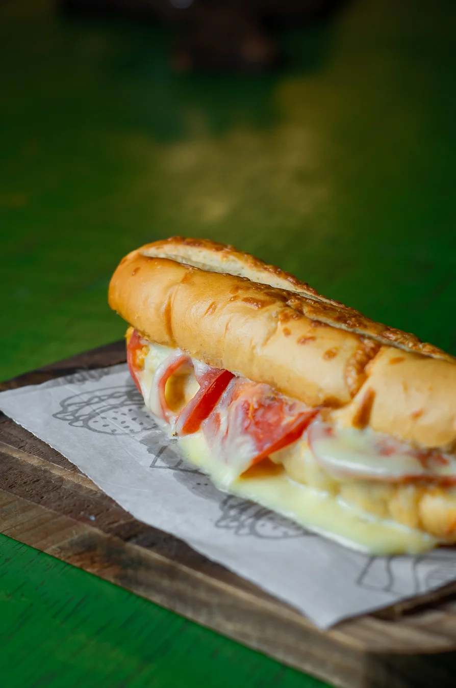 Creme de queijo brie com damasco e peito de peru no pão australiano